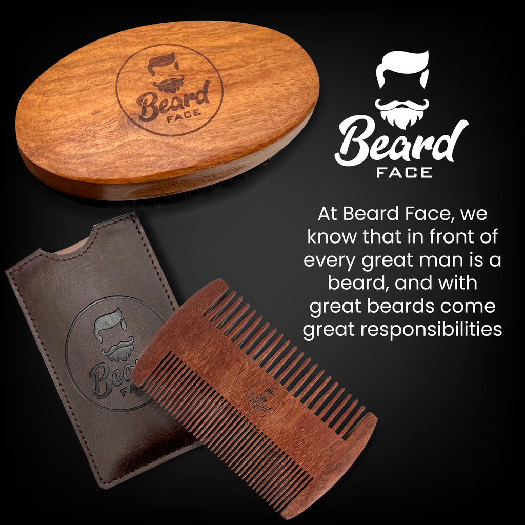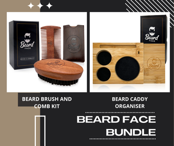 Beard Face Bundle - Beard Brush & Comb Kit with Beard Caddy